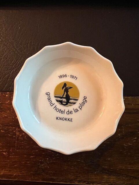 Ashtray issued to commemorate the 75th anniversary of the "Grand Hôtel de la Plage" in Knokke in 1971. In perfect condition. Diameter 10cm. Manufactured by Verrax in Brussels.