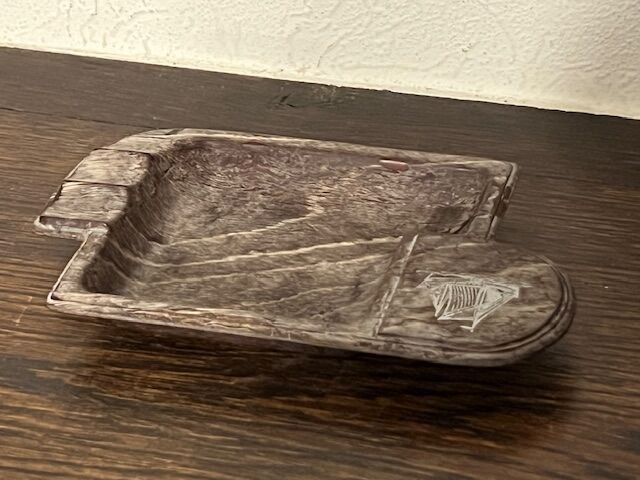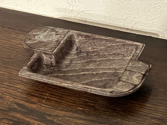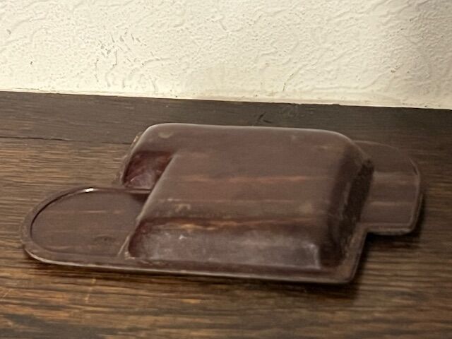 Old Bakelite ashtray, in very good condition. Art Deco style, but I think it dates back to the 1950s. Length 15cm, width 8.5cm. Stamped, but difficult to read.