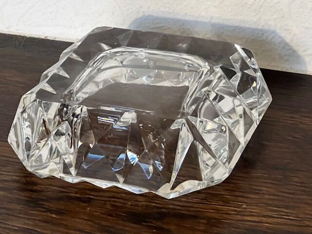 Old cut crystal ashtray, signed Van Saint Lambert. In very good condition. 11 x 11 cm
