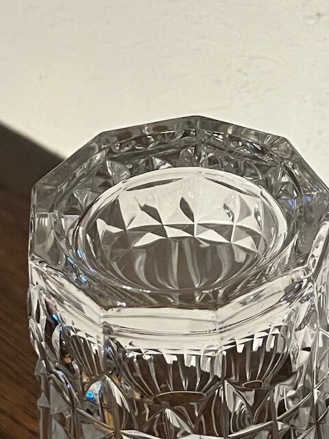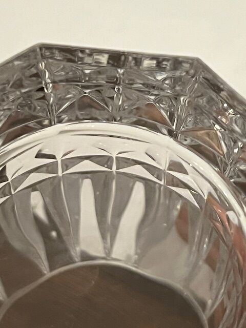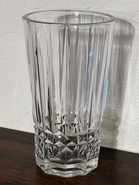 Crystal vase by Val Saint Lambert. In perfect condition. Val Saint Lambert was a manufacturer in Seraing, Belgium. Height: 20 cm. Signed on the bottom, with some goodwill visible in the detailed photo.
