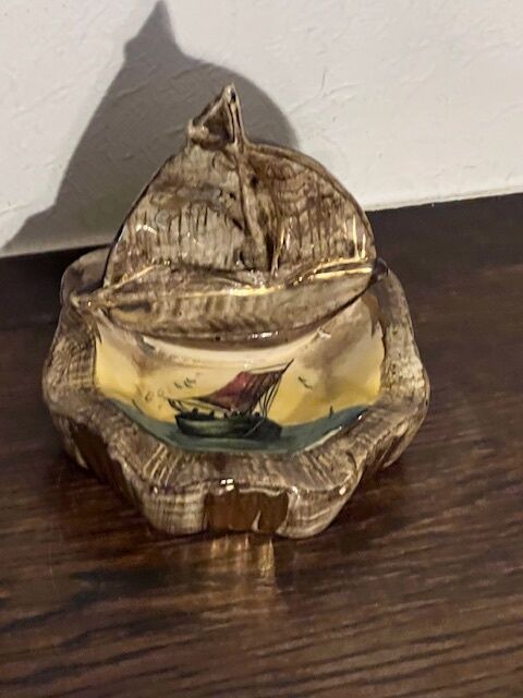 Ashtray by Ch. Bequet from Quaregnon. A souvenir from the coast. In very good condition. Height 12 cm, width 12 cm.
