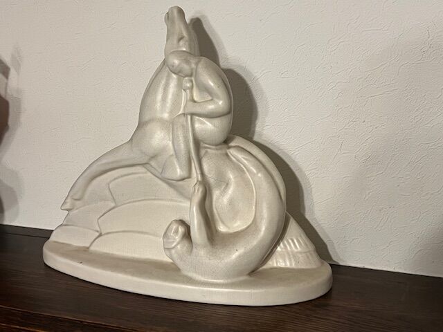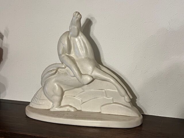 Oscar DE CLERCK (1892-1968). Art deco group in white cracked, height 40cm, lenght 56cm. In great shape