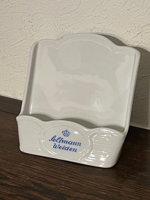Advertising china plate holder by Seltmann from Weiden, Germany. In perfect condition. 13cm wide, 11cm high.