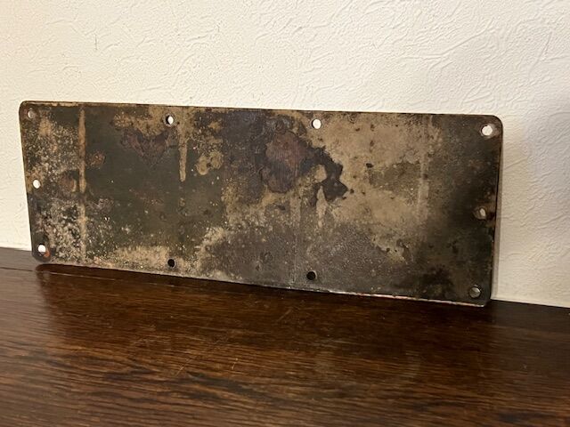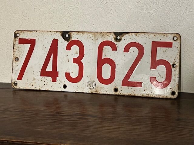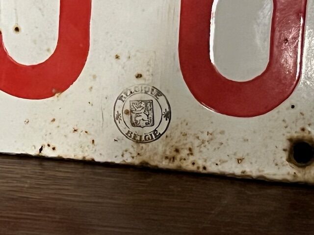 Antique enameled license plate from a Belgian car. Stamped with the Belgian government. In fairly good condition for its age. 14 x 39 cm.