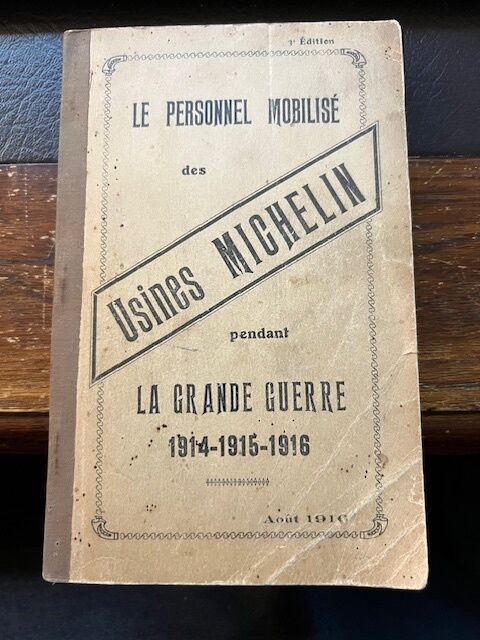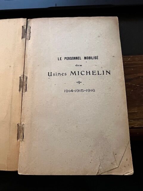 Booklet about Michelin staff in Grenoble who were mobilized to work for the French army between 1914 and 1915. The booklet contains a 310-page list of names.