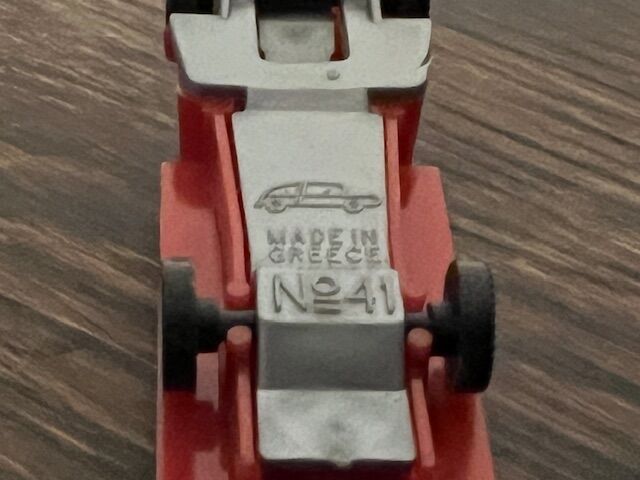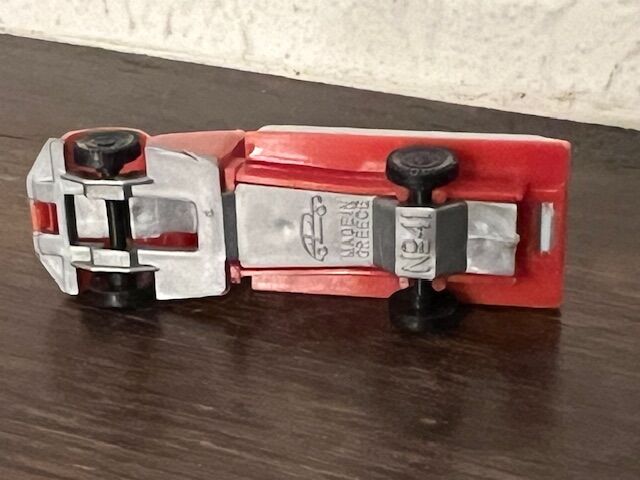 Camion miniature fabriqué en Grèce. Fabricant inconnu. Matière : plastique, longueur : 6,3 cm.