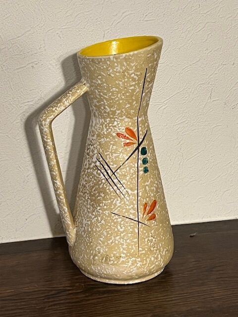 Vase design vintage des années 1950, fabriqué par Bequet, avec une étiquette B.H. Chambord. En très bon état. Hauteur 28 cm. Ce vase s'inscrit dans le style de Scheurich, Bay et d'autres fabricants allemands ; celui-ci est belge.
