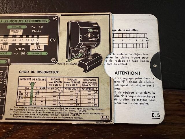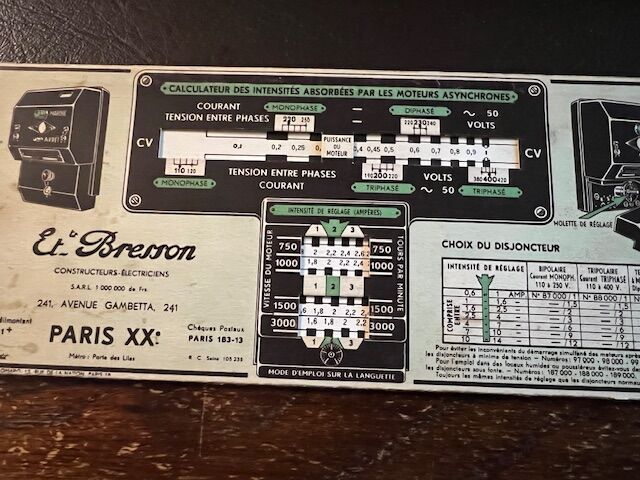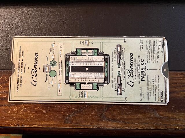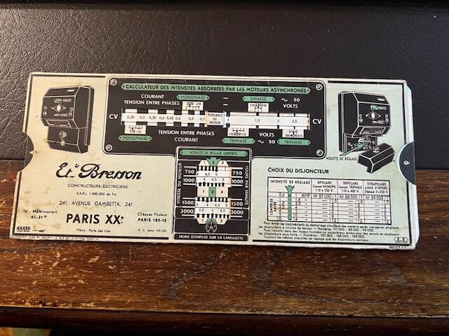 Reglette amovible pour le calcul des cables electriques en cuivre de Ets Bresson a Paris. En état parfait. 23 x 10cm