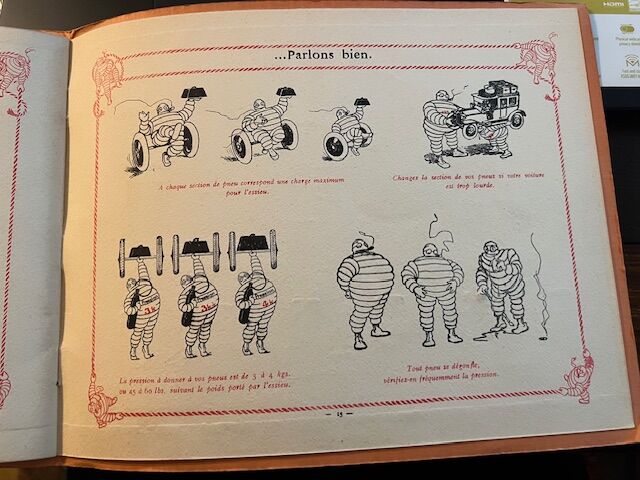 MICHELIN: Le Joyeux BIBENDUM. Dessins de COUSYN, C. KING, GRAND'AIGLE, HAUTOT, O. GALOP, ORTIZ, etc... Album 26x21 cm, 16 pages. édité en 1923