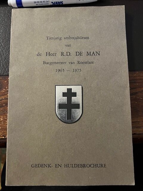 Tienjarig ambtsjubileum van de Heer R.D. De Man Burgemeester van Roeselare 1965 - 1975. 167 pagina's soft cover. Uitgegeven door de heemkundige kring van Roeselare