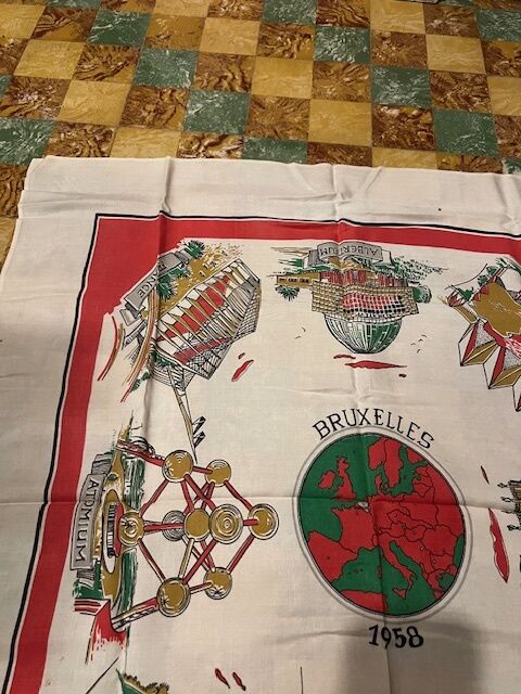 Zeldzame zijden sjaal van Expo 58 in perfecte staat!! 63 x 63cm