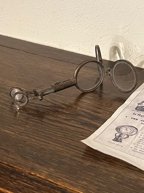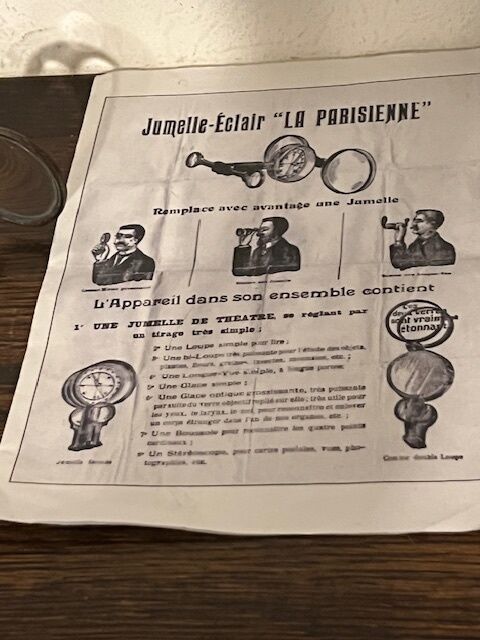 Dit was eind 19e eeuw een optische multitool. Het kon gewoon als loupe gebruikt worden of als toneelkijker. Normaal zat er ook een kompas in verwerk( dit ontbreekt bij deze) waardoor deze kon gebruikt worden om een richting te bepalen. Verder in goede staat voorzien van een fotokopie van de originele handleiding. In opengeschoven toestand, amper 10cm lang.