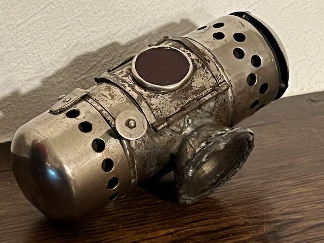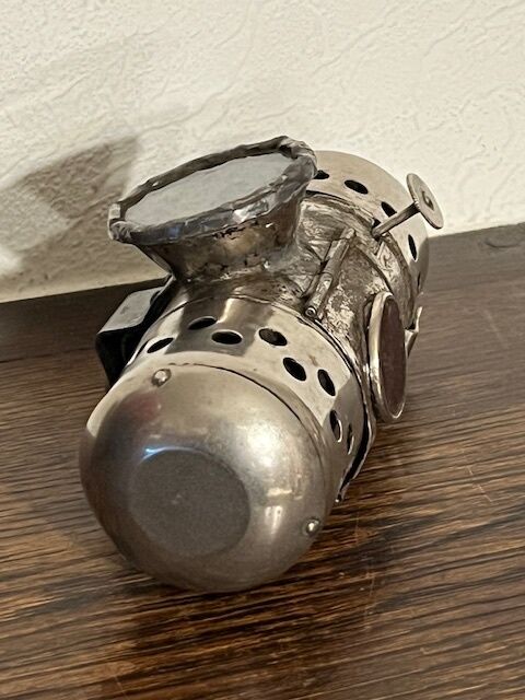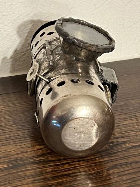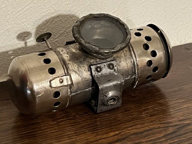 Zeer oude petroleum fietslamp. Deze dateert nog van voor de periode van de carbure lampen. Fabrikant is Summa, Totale hoogte is 16cm. Het witte glas vooraan en het rode glas opzij zijn nog in zeer goede staat. Gechromeerde messing.
