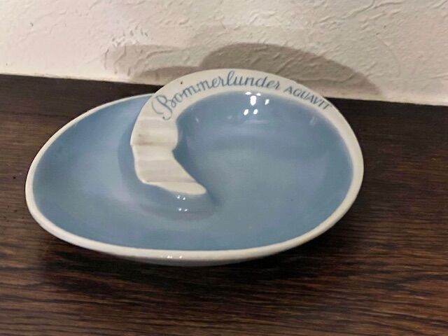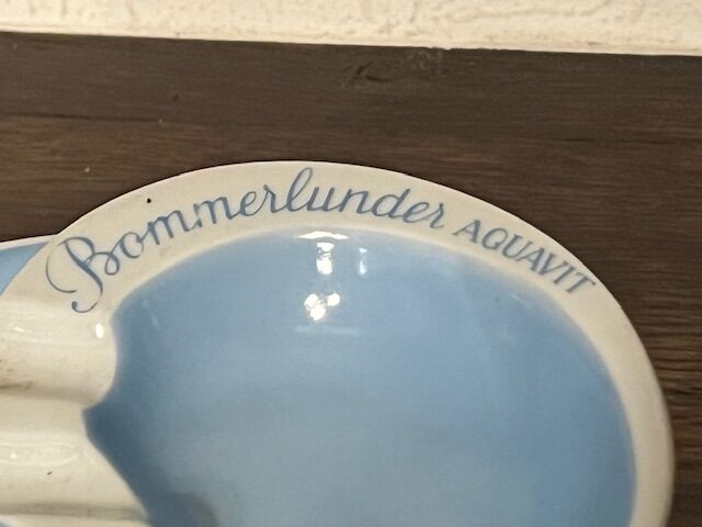 Vintage asbak van Bommerlunder Aquavit. In babyblauw. Breedte 15cm. In perfecte staat. Gemaakt in Beieren (Duitsland).