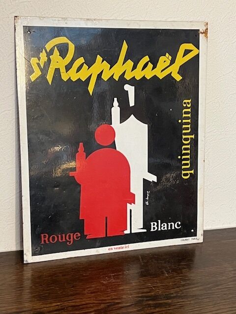 Blikken reclamebord Quinquina St Raphaël, Rouge, Blanc, getekend door Charles Loupot. Lichte beschadiging in de rechter bovenhoek. Geproduceerd bij Courbet in Parijs. 25 x 30cm.