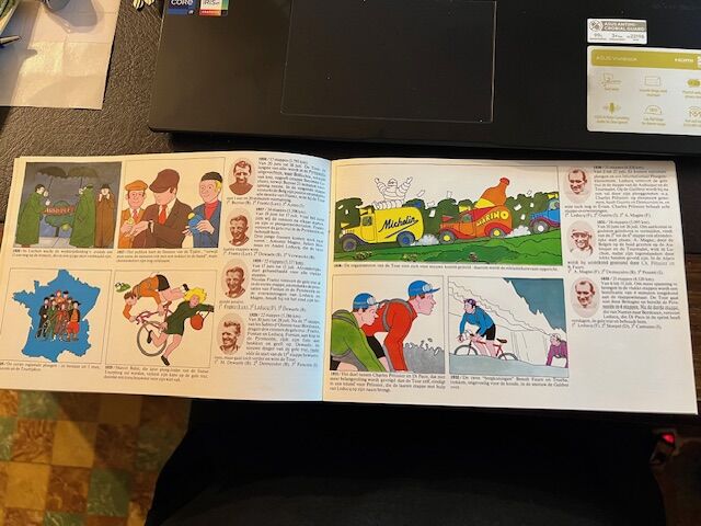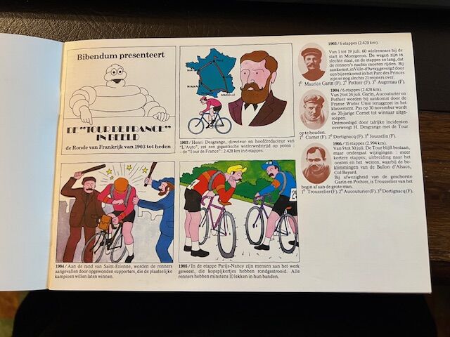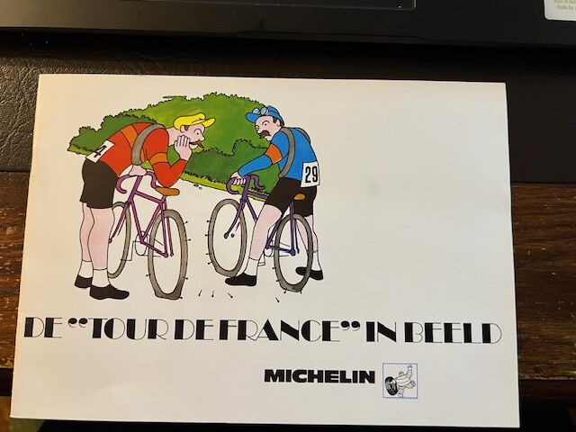 Boekje over de ronde van Frankrijk, uitgegeven door Michelin ergens halfweg de jaren 1970. Deze versie is Nederlandstalig, maar bestaat ook in het Frans. Slechts 21 x 15cm. In perfecte staat. Binnenin staat in “stripvorm” een overzicht van de winnaars in de periode 1903-1972