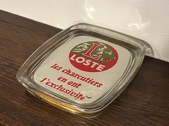 Vintage vide poche of geldschaal van aan de winkel kassa van Loste, een Franse fabrikant van charcuterie. In goede staat. Meet 18 x 21cm. Materiaal: glas.