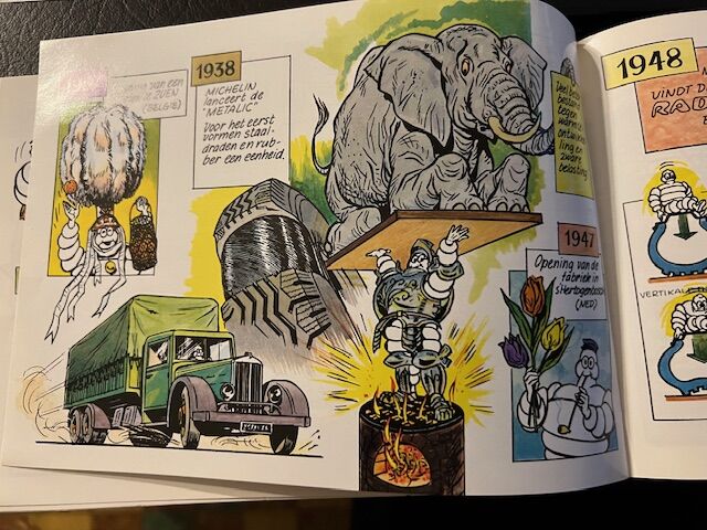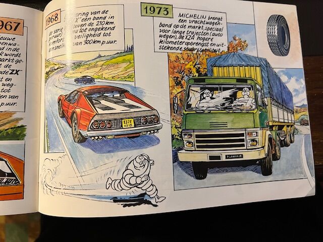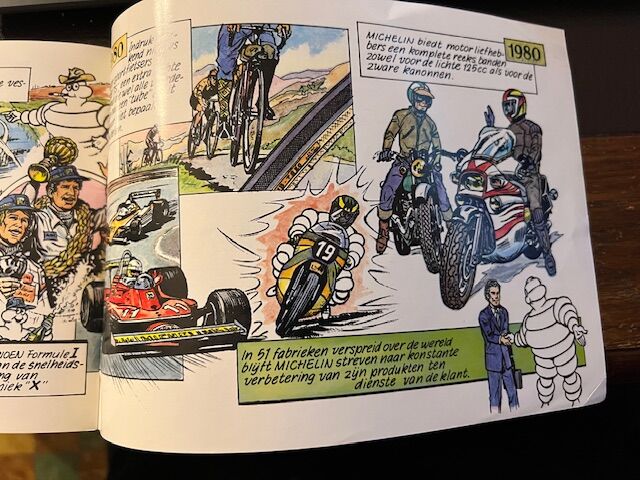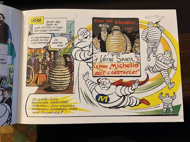 Klein soepel boekje in stripvorm over de geschiedenis van de luchtband van Michelin. Uitgegeven in 1980. In perfecte staat. Nederlandstalige versie