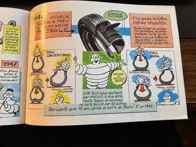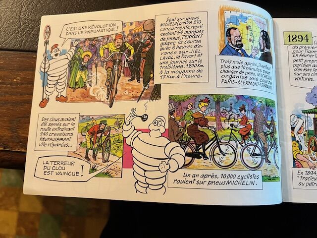 Klein soepel boekje in stripvorm over de geschiedenis van de luchtband van Michelin. Uitgegeven in 1980. In perfecte staat.