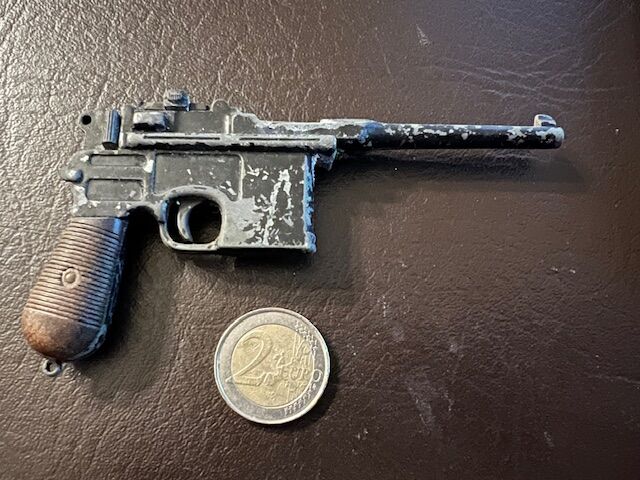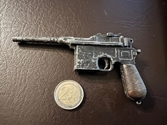 Speelgoedgeweertje van Uniwerk, Mauser C96 van 12cm lang. In werkende staat, werkt met poffertjes.
